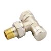 Запорный угловой клапан используют в двухтрубных насосных системах водяного отопления для отключения отдельного отопительного прибора с целью его технического обслуживания или демонтажа без слива воды из всей системы. Клапан применяется для подключения радиаторов с боковым подключением. Клапан RLV-S имеет традиционную функцию, а RLV имеет возможность подключения дренажного крана 003L0152. Максимальная рабочая температура - 120°С. Корпус изготовлен из латуни и покрыт никелем.