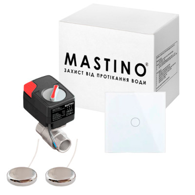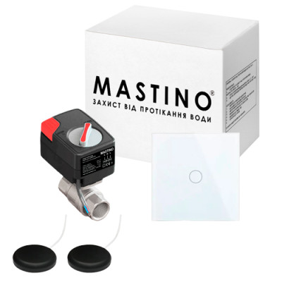Система защиты от протечки воды Mastino TS2 1/2 Light white 2 датчика 1 кран - предназначена для своевременного обнаружения и локализации протеканий воды в системах водоснабжения и отопления. Система Мастино заблокирует подачу воды до устранения причин протекания и проинформирует об аварии звуковыми и световыми сигналами.