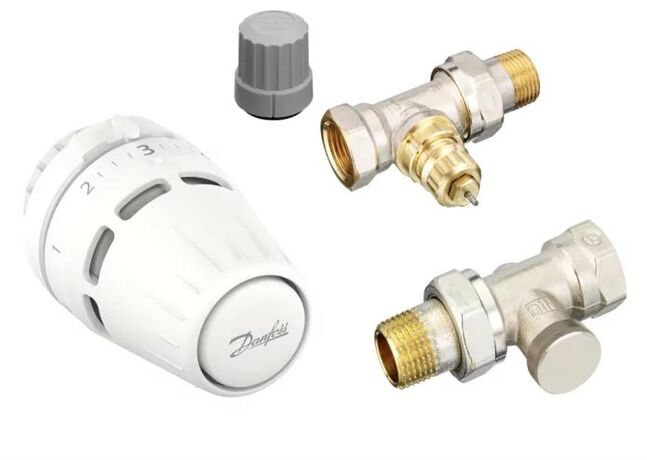 В состав комплекта входит термостатическая головка Danfoss Regus RA, которая автоматически поддерживает заданный температурный режим, реагируя на малейшие изменения микроклимата. Это позволяет создать комфортные условия в комнате и уменьшить потребление энергии без постоянной ручной регулировки. Термостатический клапан RA-FN обеспечивает стабильную подачу теплоносителя к радиатору и совместим с системами водяного отопления. Запорный клапан RLV-S позволяет быстро перекрыть подачу воды на радиатор во время обслуживания или замены оборудования, не останавливая всю систему.