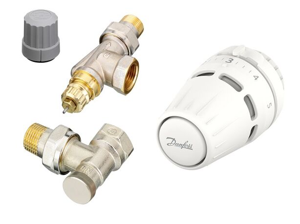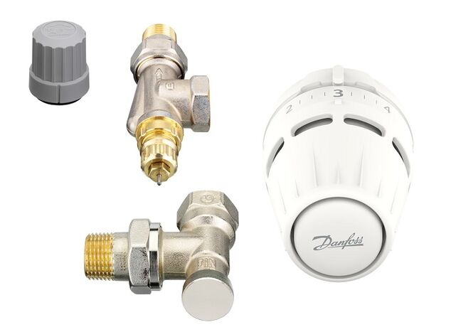В состав комплекта входит термостатическая головка Danfoss Regus RA, которая автоматически поддерживает заданный температурный режим, реагируя на малейшие изменения микроклимата. Это позволяет создать комфортные условия в комнате и уменьшить потребление энергии без постоянной ручной регулировки. Термостатический клапан RA-FN обеспечивает стабильную подачу теплоносителя к радиатору и совместим с системами водяного отопления. Запорный клапан RLV-S позволяет быстро перекрыть подачу воды на радиатор во время обслуживания или замены оборудования, не останавливая всю систему.