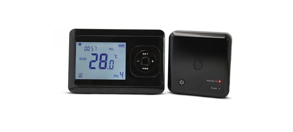 Термостат состоит из блока регулировки с питанием от батареек и выносного блока с «сухим» контактом и питанием 230В. Блок&регулирования с выносным блоком работают по радио каналу 433МГц.