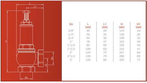 Чертеж и размер предохранительного клапана Officine Rigamonti 1831: