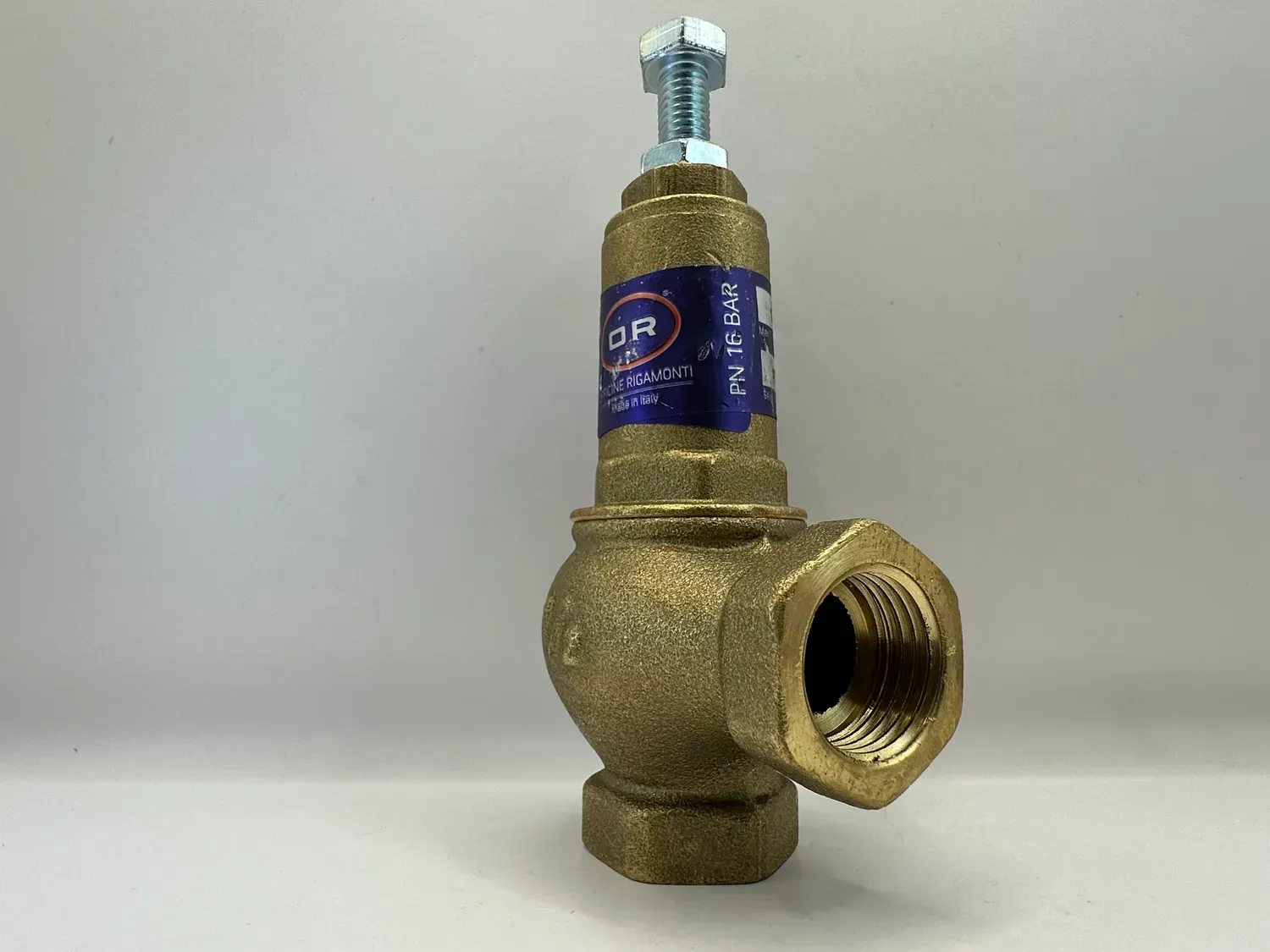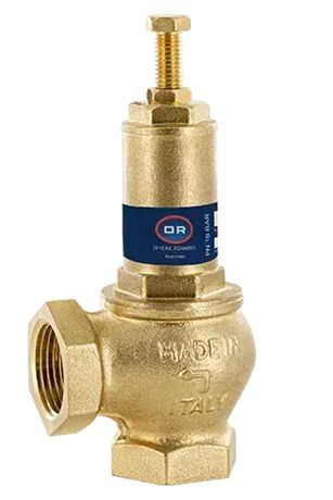 1831.015 Клапан сброса давления 1/2" OR (Officine Rigamonti) с управляемым (регулируемым) спуском - это предохранительное устройство от избыточного давления, которое открывается, используя только энергию среды, при достижении внутренним давлением системы максимального значения установленного для клапана (номинальное давление настройки Pnr), сбрасывая среду в отводящий трубопровод. Доступный в версии с уплотнителем из металла, эластомера SBR или PTFE.