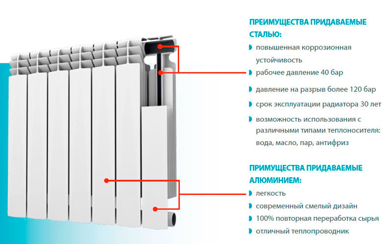 Итальянские радиаторы Fondital Alustal имеют биметаллическую конструкцию, отличаются наличием полностью стального сердечника с цельностальной сердцевиной и алюминиевой литой оболочкой. Радиатор имеет повышенную стойкость к коррозии, идеально подходит для использования в сложных условиях, где есть риск возникновения коррозии - в многоэтажных сооружениях при более высоком давлении в трубопроводе и PH воды, по сравнению с алюминиевым радиатором. Радиаторы Fondital Alustal служат длительный срок даже в жестких украинских условиях с низким качеством теплоносителя и перепадами давления.