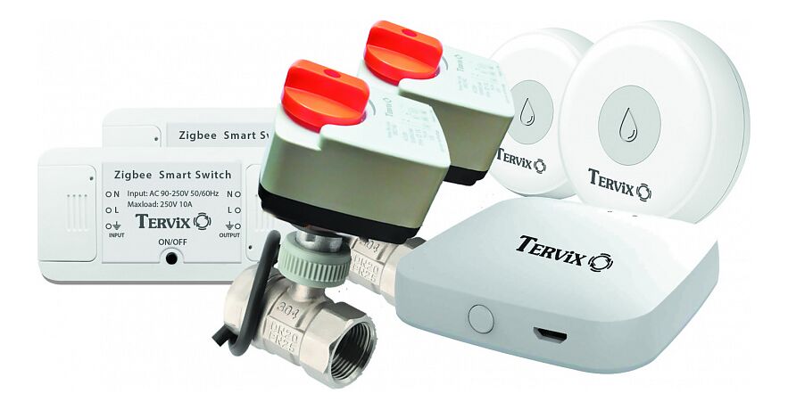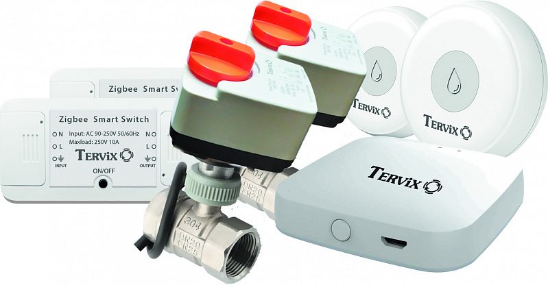 Система защиты от потопа для дома Tervix ZigBee Water Stop Premium на 2 трубы 1/2" с 2-х ходовыми шаровыми клапанами премиум серии и беспроводными датчиками - это современная система для удаленного обнаружения и предотвращения потопа.