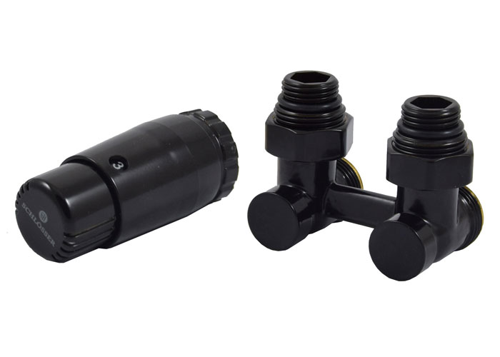 Schlosser Комплект нижнего подключения угловой, черный с термоголовкой MINI