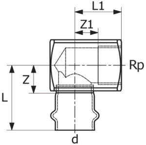 Предназначен для изменения направления трубопровода под направлением 90° с переходом на наружную резьбу.