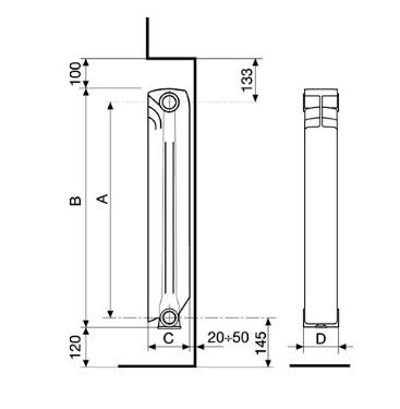 Размер биметаллический радиато Alltermo Classic+