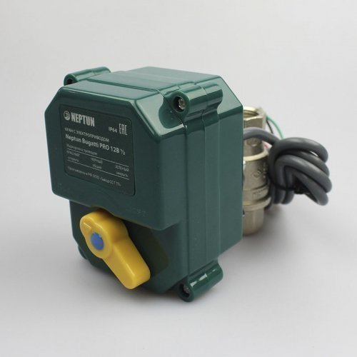 Кран Bugatti Pro 220B оборудован электроприводом для автоматического, дистанционного перекрытия потока в результате срабатывания датчиков контроля течи воды. Особенности устройства: