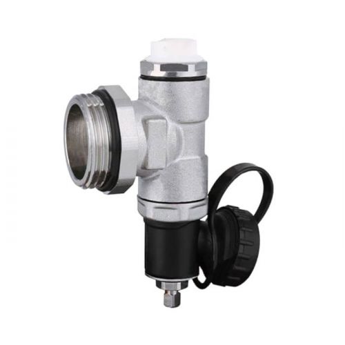 Вариант для тех, кто слабо верит в идеальную работу автоматических воздухоотводчиков. Используется на подающей и обратной линии коллектора. Может использоваться как на коллекторах для теплого пола, так и на обычных, распределительных. Воздух отводится вручную, с помощью простой отвертки, есть возможность сливать и подпитывать систему теплоносителем.