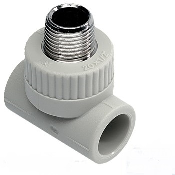 Тройник полипропиленовый комбинированный с наружной резьбой Ekoplastik (Чехия) – специальный фитинг из полипропилена со вставками из оцинкованной латуни. Он используется для соединения под углом в 90 градусов полипропиленовых труб марок PN10, PN16, PN20 с медными или стальными фитингами и трубами с помощью резьбы.