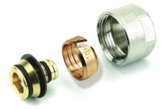 Резьбовое соединение с евроконусом для труб из поперечносшитого полиэтилена иметаллопластиковых труб, служит адаптером для коллекторов HKV и узлов нижнегоподключения радиатора. Состоит из евроконусного штуцера с уплотнениями(антигальваническая изоляция), накидной гайки 3/4" и разрезного кольца.