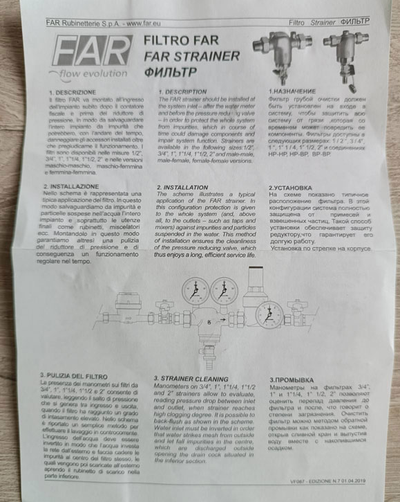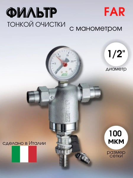 Фильтр самопромывной FAR FA394412100 с манометром устанавливается в водопроводную или отопительную систему квартир, частных домов, коммерческих, промышленных и общественных объектов. Предназначение фильтра FAR – не допускать попадание в водопроводную или отопительную систему таких загрязняющих веществ, как песок, каменная крошка, известь, иных твердых частиц соответствующего размера.