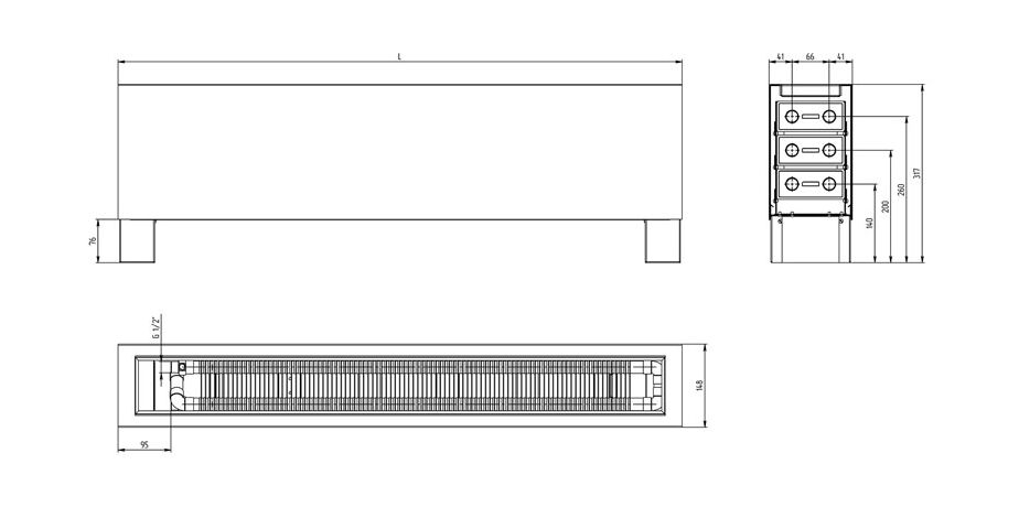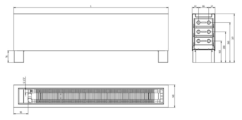 Конвектор напольный Carrera FR3W состоит из нескольких основных элементов: