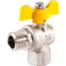 Конструкция газового шарового крана достаточно проста – он состоит из прочного корпуса, в котором находится запорная деталь и уплотнение штока. Запорным элементом служит шаровидная деталь, благодаря которой арматура и получила название. Данные краны в основном производят из латуни, чугуна или нержавеющего металла. Они бывают с внутренней и наружной резьбой (увеличенное количество витков резьбы позволяет создавать более герметичные соединения). Механизмом управления служит установленная на шток накидная гайка с «бабочкой» или специальная рукоятка. Газовый кран с ручкой типа «бабочка» самый популярный и используется как в промышленности, так и в быту, ведь они полностью исключают возможность утечки газовой смеси.