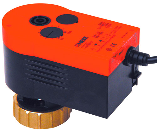 Привод для трехходовых или проходных клапанов с позиционером, 500 Н. Для управления от контроллеров с аналоговым выходом или двух/трехпозиционным регулированием. Возможный вид характеристики - линейный или равнопроцентный. Корпус из двух частей, из невозгораемого пластика. Консоль из пластика, накидная гайка из латуни. Автоматическая настройка на ход клапана. Программирующий коммутатор для выбора характеристик и времени срабатывания. Наружное ручное управление с отключением двигателя. Редуктор для позиционирования клапана и ручного регулирования. Возможно любое положение на клапане, кроме положения приводом вниз.