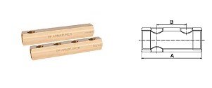 PF MF 258. Profactor Коллектор латунный односторонний используется в системах водоснабжения, водяного радиаторного или напольного отопления для распределения и регулирования рабочей среды в системе. Каждая труба системы водоснабжения, отопительной системы водяного отопления или теплого водяного пола подключается к коллектору, что позволяет осуществлять регулировку и контроль потока теплоносителя индивидуально в каждом циркуляционном контуре. PF MF 258. Profactor Коллектор латунный односторонний может использоваться на трубопроводах, транспортирующих жидкие среды, неагрессивные к материалам изделия (вода, антифриз на основе этиленгликоля). Максимальное содержание этиленгликоля в антифризе - 30%. Антифриз следует применять, если характеристики системы предполагают температуру носителя ниже 0°С. Расстояние между осями боковых выходов: 50 мм. Допускается к установке в любом монтажном положении