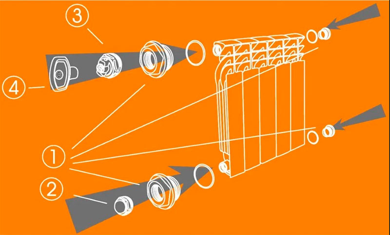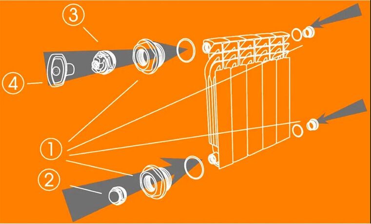 Универсальный комплект футорок для алюминиевых и биметаллических радиаторов CRISTAL.