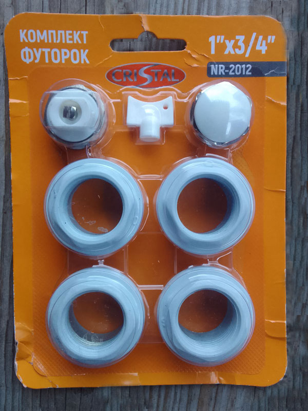 4 футорки 1x1/2" ,1х3/4" с прокладками (2 левые и 2 правые) ;