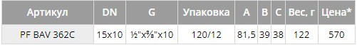 - Седельный затвор с резиновым уплотнением. Вентиль имеет обжимную цангу для подсоединения медной трубки диаметром 10 мм.