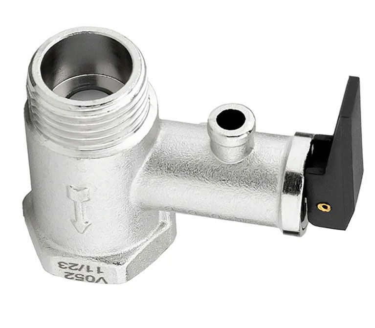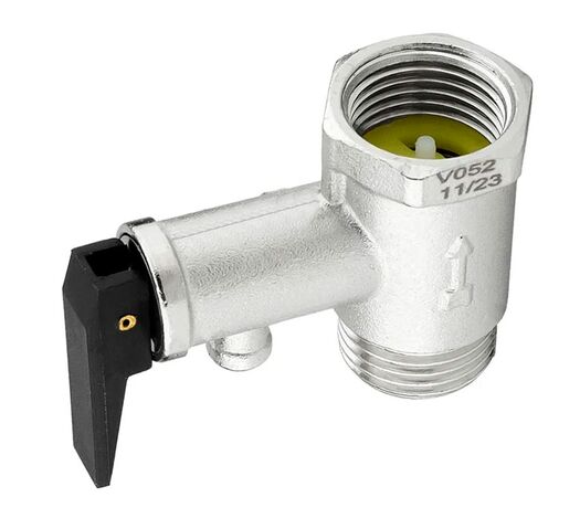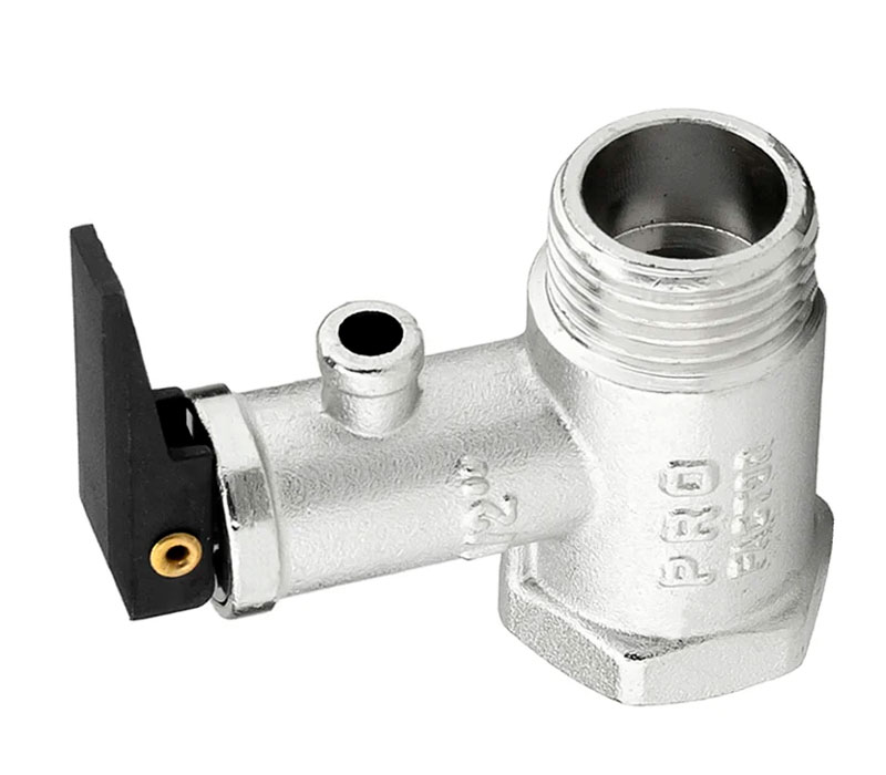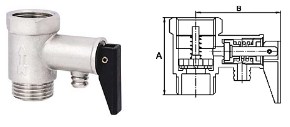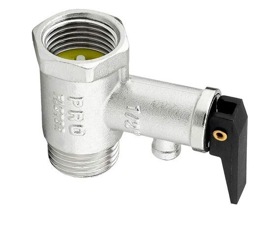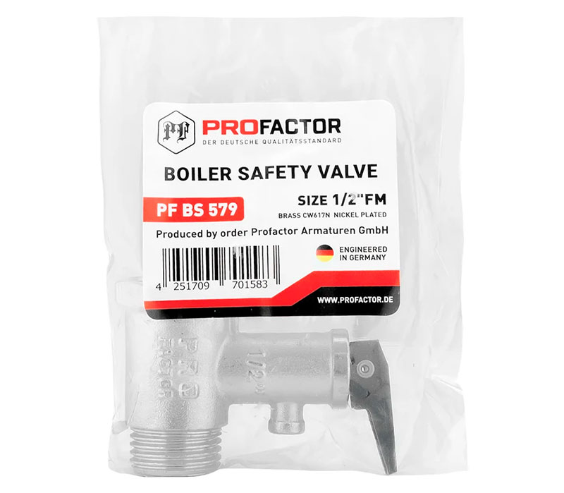PF BS 579. Profactor Клапан безопасности для водонагревателя с ручкой сброса выполняет функцию как предохранительного, так и обратного клапана. Он предназначен для защиты водонагревательных систем от превышения максимально допустимого рабочего давления, а также для предотвращения вытекания нагретой воды обратно в подающий трубопровод при малом давлении в нем или отсутствии подачи воды. При повышении давления в системе сверх допустимого клапан производит частичный сброс рабочей среды в атмосферу или в отводящий трубопровод. В качестве рабочей среды может использоваться вода, воздух, этиленгликоль (не более 50%), пропиленгликоль , природный газ, СУГ и другие.