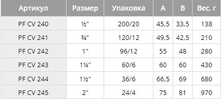 PF CV 240. Profactor Клапан обратный осевой в/в с латунным механизмом