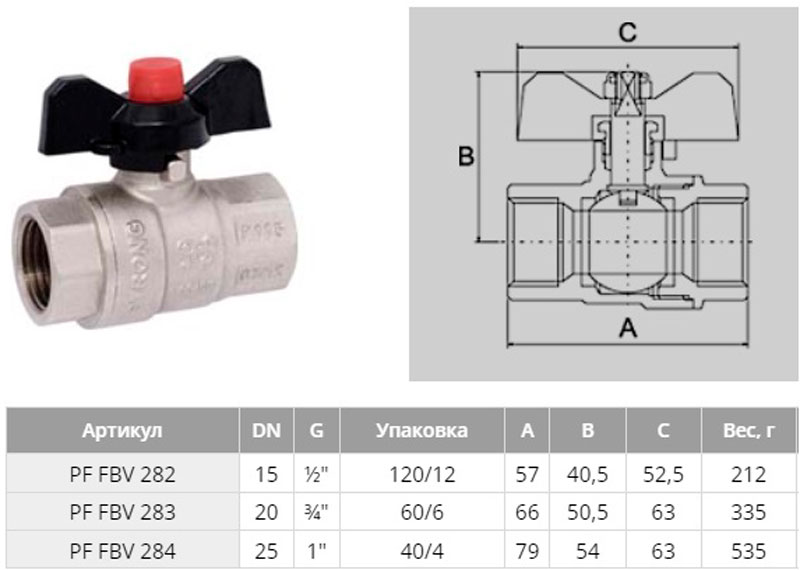 PF FBV 282 Кран шаровой Profactor Strong в/в Profactor, ручка-бабочка