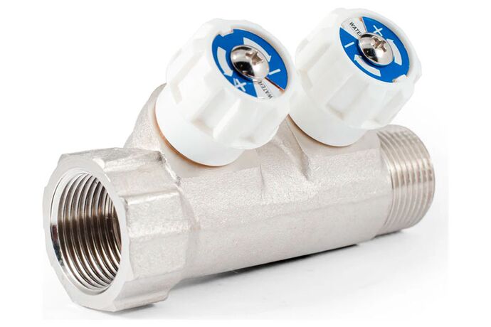 PF MV 269. Profactor Коллектор латунный в/н с регулируемыми вентилями используется в системах водоснабжения, водяного радиаторного или напольного отопления для распределения и регулирования рабочей среды в системе. Каждая труба системы водоснабжения, отопительной системы водяного отопления или теплого водяного пола подключается к коллектору, что позволяет осуществлять регулировку и контроль потока жидкости индивидуально в каждой линии. Коллекторы могут использоваться на трубопроводах, транспортирующих жидкие среды, неагрессивные к материалам изделия (вода, антифриз на основе этиленгликоля.