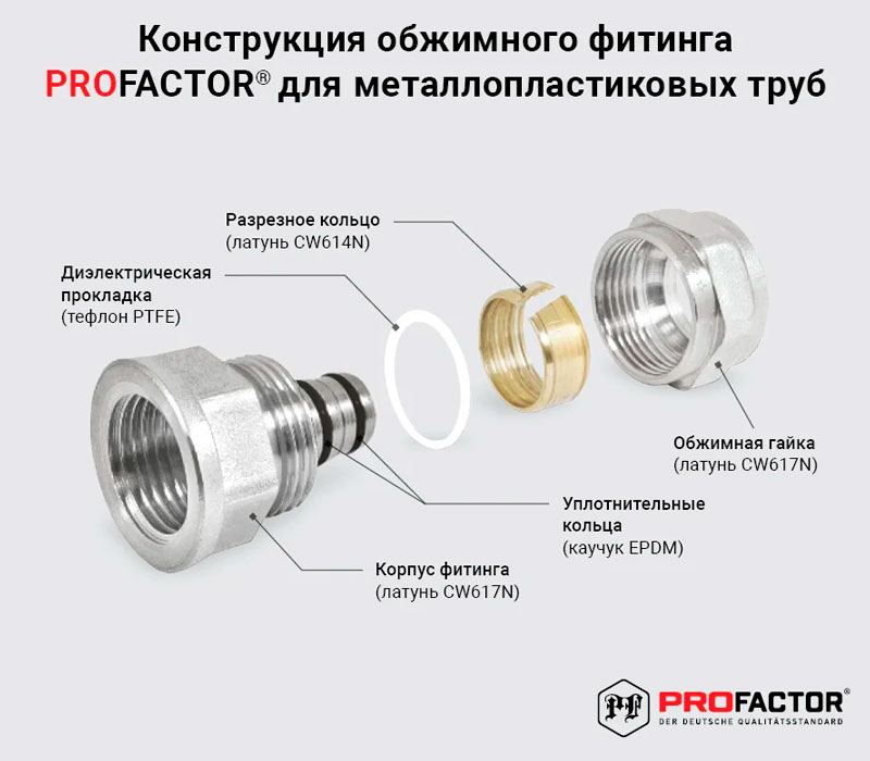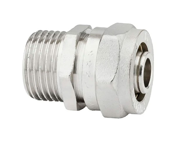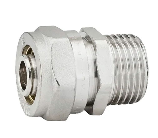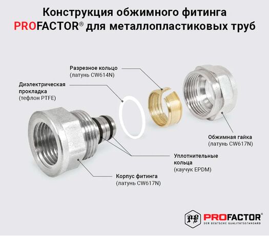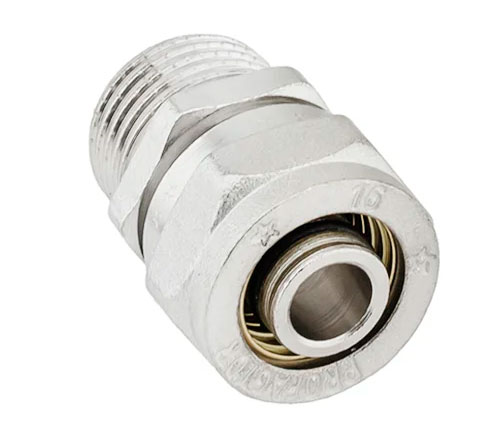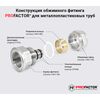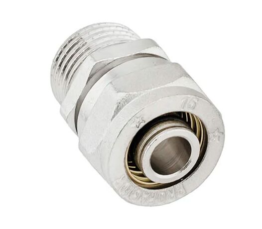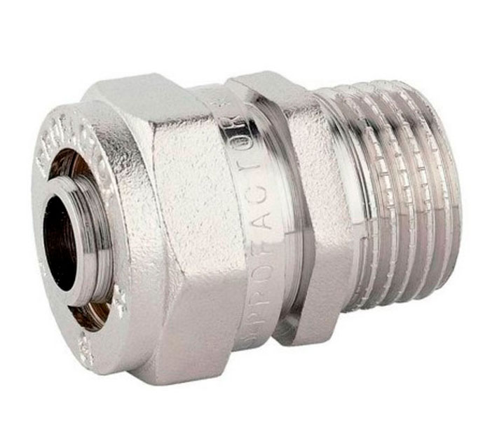 PF PF 410. Profactor Фитинг прямой латунный никелированный обжимной с переходом на наружную резьбу