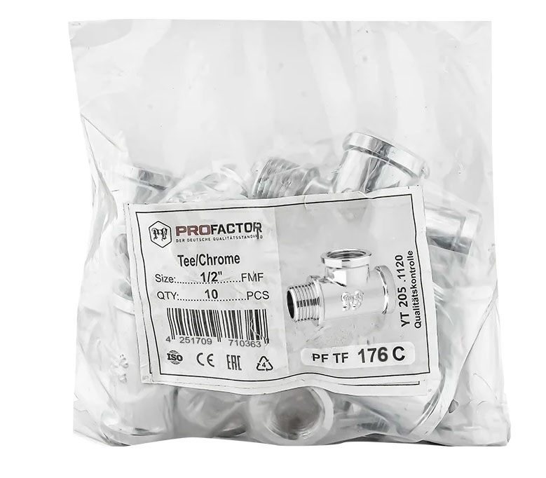 PF TF 176C. Profactor Тройник в/в/н латунный хромированный полированный