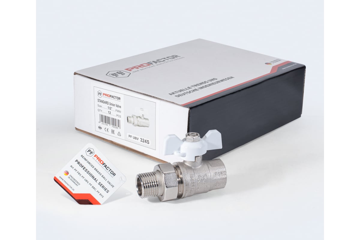 В общем, запорный шаровой кран PROFACTOR с американкой является надежным и эффективным решением для перекрытия потока жидкости или газов в трубопроводе и обеспечения его герметичности. Он может использоваться в различных отраслях, таких как водоснабжение, отопление и другие.