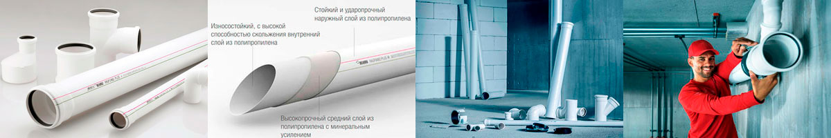 Например, полимерные трубы состоят из трех слоев, средний слой отличается не только повышенной прочностью, но и обладает шумопоглощающим эффектом. Снижению шума при эксплуатации канализационной сети Raupiano Plus способствуют специальные хомуты, с помощью которых канализационные трубы фиксируются на стенах.