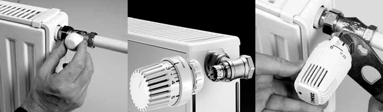 Для поддержания в отапливаемом помещении нужного температурного режима используют специальные термостатические регулирующие вентили (термоголовки). Эти компактные устройства представляют собой контролирующий термостатический механизм автоматического действия и устанавливаются непосредственно на батарею отопления. Действуя в паре с термостатическим клапаном, они способны поддерживать установленный уровень температуры в помещении, автоматически регулируя поступление теплоносителя в отопительный прибор (радиатор, конвектор или батарею).