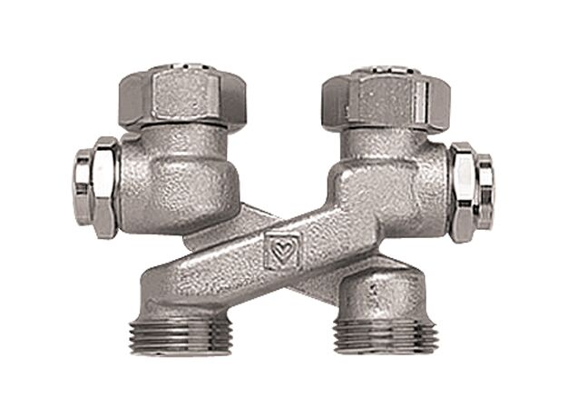 Перед вами зносостійке та багатофункціональне вузол нижнього підключення формі "X" з перекриттям, створене з двох переплетених запірних елементів, оснащене міцними вентилями. Виріб застосовується у випадку, коли переплутані магістралі подачі та обратки, також для здійснення зливу, наповнення та замикання радіатора. Міжцентрова відстань становить 50 мм, призначена для підключення до радіаторних батарей з внутрішнім різьбленням G3/4". Застосовується даного типу перехрестя у формі "X" у двотрубних системах опалення, а також нижнього підключення радіатора. 120 °C, здатний витримувати максимальний робочий тиск до 10 Бар.