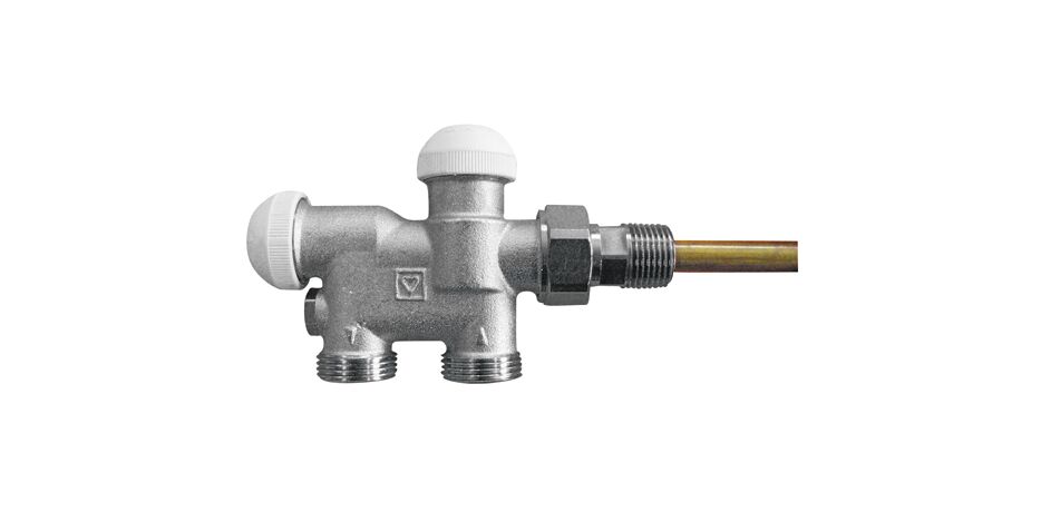 HERZ-VTA-40-Uni-універсальний чотириходовий клапан для одно- та двотрубних систем. Підключення до радіатора нижньобокове, з плоским ущільненням. З ланцетною трубкою I = 290 мм, діаметр 11 мм, міжосьова відстань 40 мм. Можливе перемикання з одно-на двох-трубку, з перекриттям; з двома термостатичними кран-буксами, можливість заміни радіатора під тиском, заміна букси під тиском за допомогою HERZ-Чейнжфікс. Фітинги для труб G3/4 замовляються окремо.
