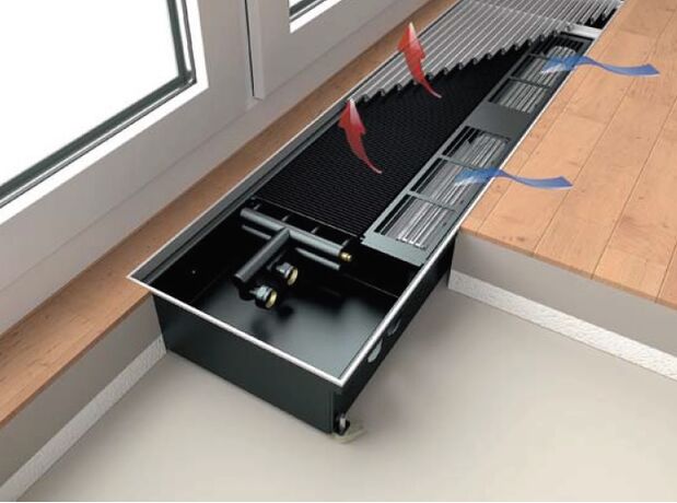 Внутрішньопідлогові конвектори Kermi-KRN81 відомого німецького бренду, укомплектовані діаметральним вентилятором з ЕС-електродвигуном, це ідеальний варіант опалювальних приладів для приміщень із заскленими фасадами та панорамними вікнами. Працюючи за принципом примусової конвекції, вони не тільки забезпечують швидке прогрівання простору, що опалюється, але і можуть ефективно створювати тепловий бар'єр від зовнішнього холодного повітря.