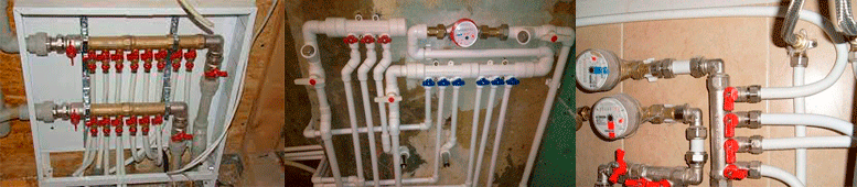 Принцип їх дії полягає в тому, що при досягненні заданої температури теплоносій потрапляє в гребінець, що подає. Потім розподільні колектори з клапанами, що відсікають, ділять його між опалювальними пристроями, направляючи по підключених трубах. За необхідності кожну з них можна заблокувати просто повернувши вентиль кульового крана.