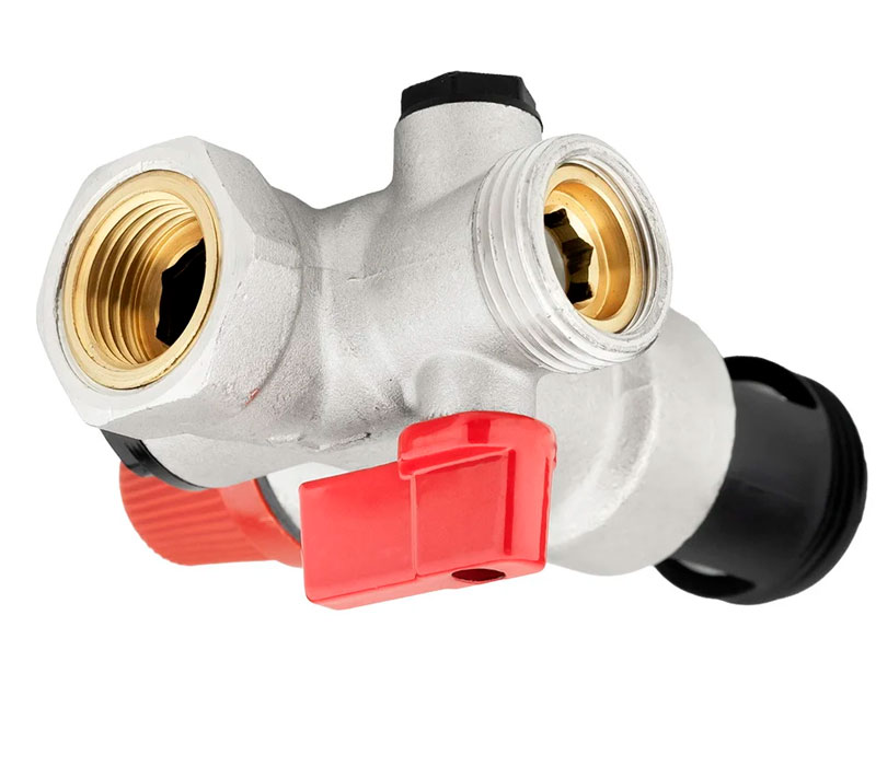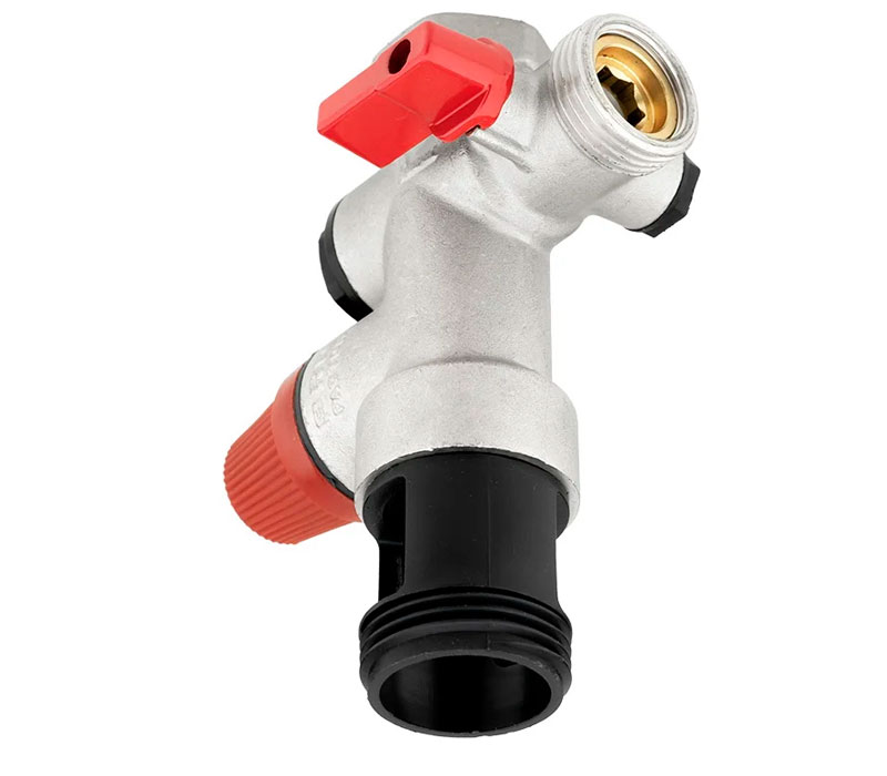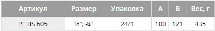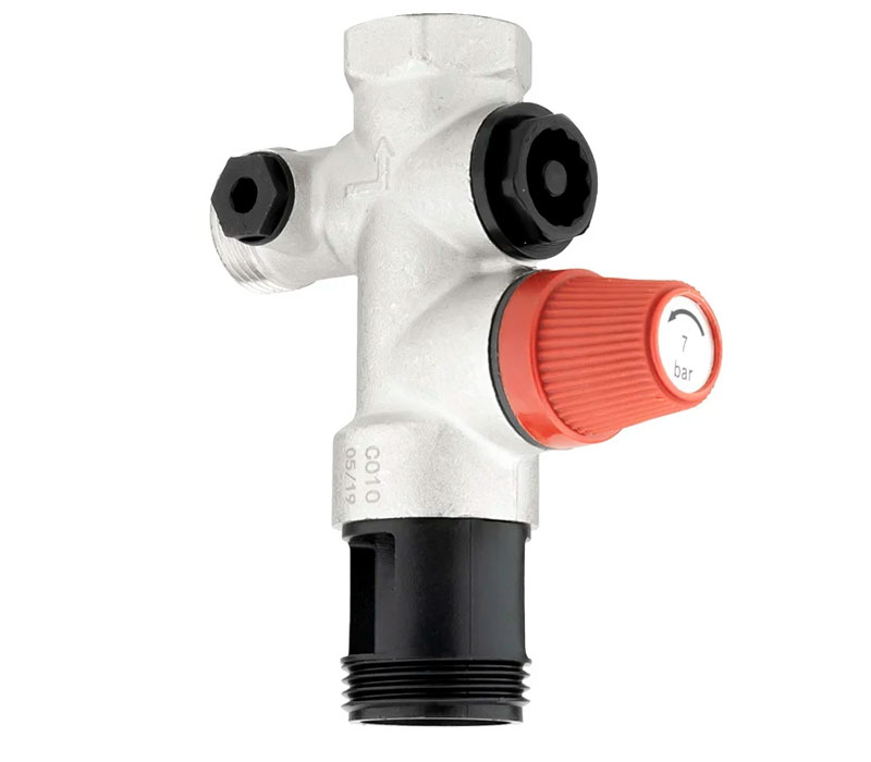 PF BS 605. Profactor Група безпеки бойлера (водонагрівача) виконує функцію як запобіжного, так і зворотного клапана. Призначена для захисту водонагрівальних систем від перевищення максимально допустимого робочого тиску, а також для запобігання витіканню нагрітої води назад у трубопровід при малому тиску в ньому або відсутності подачі води. Виріб також виконує функції перекриття подачі води у водонагрівач. Встановлюється на електричні ємнісні водонагрівачі або невеликі котли потужністю до 10 кВт.