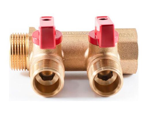 Колектор PF MV 264. Profactor Колектор латунний з кульовими кранами ProFactor, в/з використовується в системах водопостачання, водяного радіаторного або опалення для підлоги для розподілу робочого середовища в системі. Кожна труба системи водопостачання, опалювальної системи або теплої водяної підлоги підключається до окремого відведення колектора з кульовим краном, що дозволяє здійснювати персональне підключення або відключення джерела споживання. Червоно-сині ручки у комплекті.