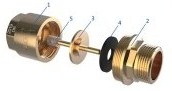 - матеріал корпусу: латунь CW617N (ЛЗ 59-2), ущільнення: NBR (бутадієн-нітрильний каучук), зворотна пружина: нержавіюча сталь AISI 304 (12Х18Н9)