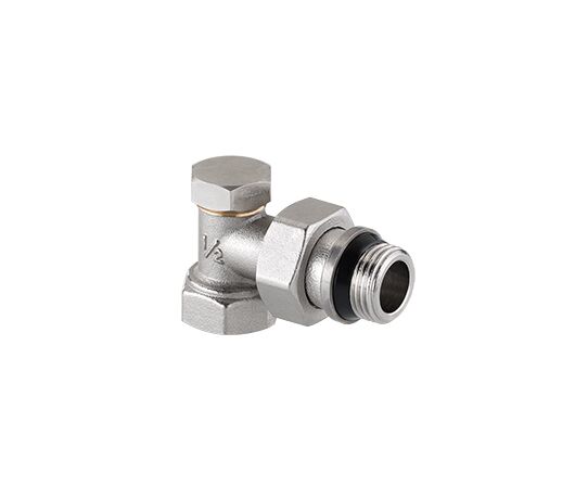 (VT.019.NR) Кутовий радіаторний клапан. Основне призначення – налаштування витрати теплоносія через опалювальний прилад під час балансування системи. Наявність напівзгону дозволяє монтувати та демонтувати клапан без демонтажу трубопроводу. Ремонтопридатний. Пропускна здатність клапана залежить від напрямку потоку. Робоча температура – до 120 ° С, тиск – до 10 бар. Різьблення приєднань – внутрішнє/зовнішнє. Клапан має додаткове ущільнення з EPDM.