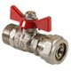 (VT.341.N) Кульовий кран редукований (зменшеного проходу) для використання у складі інженерних систем та технологічних установок на основі металопластикових труб при температурі від –15 до +110 °С та робочому тиску до 10 бар. Неремонтопридатний, з мінімальним ресурсом 4 тис. циклів. Оснащений ручкою типу «метелик» із алюмінієвого сплаву з епоксидним фарбуванням. З'єднання з металополімерним трубопроводом – обтискне, одностороннє; різьблення другого патрубка - зовнішня. Не призначений до застосування на стояках, магістральних трубопроводах та ділянках систем, в яких можуть виникнути згинальні зусилля, що передаються на корпус крана.