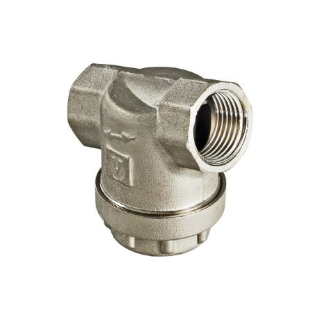 (VT.386.N) Універсальний фільтр механічного очищення. Напрямок руху рідини чи газу – будь-який. Завдяки колбі, повернутій назустріч потоку, придатний для встановлення на вертикальних ділянках трубопроводу під час руху потоку знизу-вгору. Корпус та пробка фільтра виконані з латуні марки CW617N (європейський стандарт EN 12165), нікельовані. Між ними є прокладка з EPDM. Корок оснащений отвором для пломбування. Розмір часток, що затримуються - від 300 мкм. Максимальна робоча температура середовища, що фільтрується, – 110 °C. Максимальний робочий тиск – 16 бар. Різьблення приєднання – внутрішнє, 1/2".