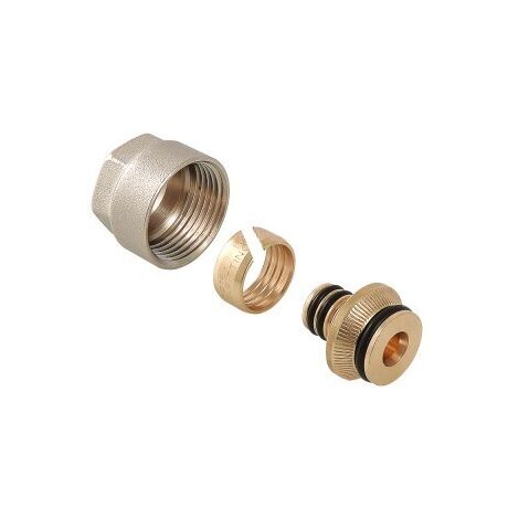 (VT.4420.NVE) Латунний фітинг із накидною гайкою та обтискним кільцем для підключення металополімерної труби до виходів колектора або патрубків іншої арматури діаметром 3/4", стандарт з'єднання – «євроконус».