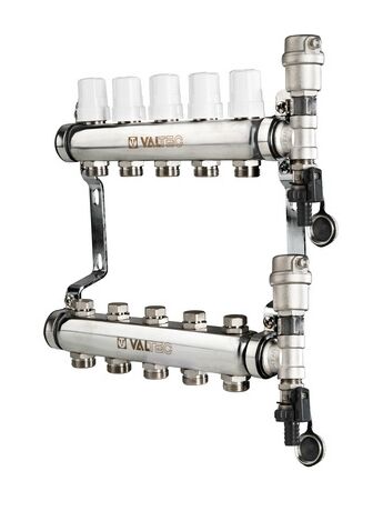 VTC.588. VALTEC Колекторний блок із нержавіючої сталі з термостатичними клапанами