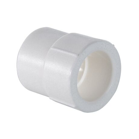 (VTp.704.0) Муфта поліпропіленова перехідна для з'єднання деталей поліпропіленового трубопроводу методом розтрубного зварювання з переходом на інший діаметр. Призначений для випадків, коли перехід з одного діаметра трубопроводу на інший здійснюється через фітинг, наприклад поліпропіленовий косинець або трійник. Зварювані поверхні – внутрішня/зовнішня.