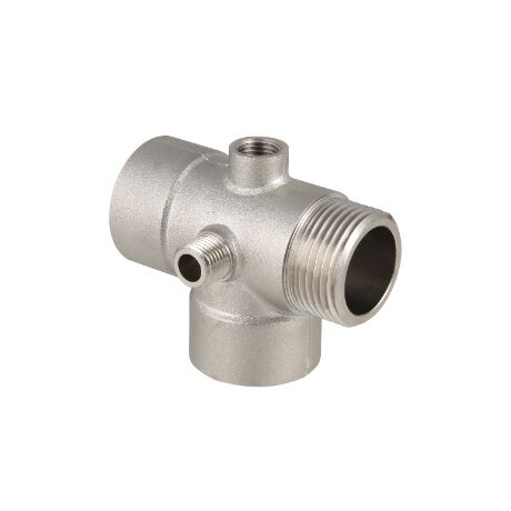 (VTr.600.N) Як правило, сучасна побутова насосна станція оснащується розширювальним баком, реле тиску та манометром. Компактно підключити це до нагнітального патрубка насоса допоможе пропонований фітінг. П'ятиходовий з'єднувач для насоса VTr.600 виконаний з латуні CW617N методом гарячого об'ємного штампування, має нікелеве гальванопокриття. Патрубок 1/4" з внутрішнім різьбленням служить для приєднання манометра, із зовнішньою – для реле тиску. Діаметр різьблення інших патрубків – 1" (внутрішня/зовнішня/внутрішня). Монтажна довжина виробу – 80 та 110 мм.