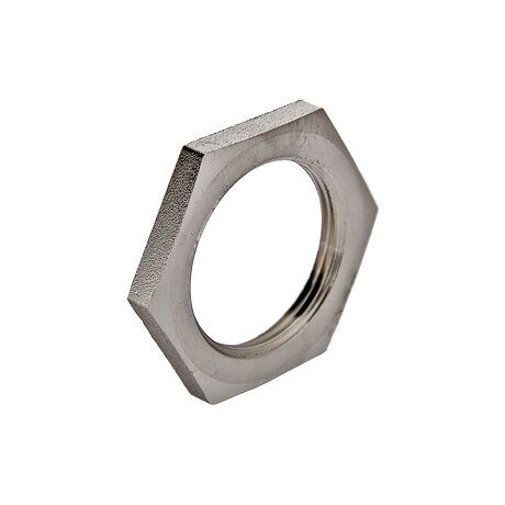 (VTr.656.N) Контргайка є найбільш недорогим, але ефективним варіантом виробів, гайкових замків, що запобігають розкручуванням різьбових елементів (муфти, згони) трубопроводів внаслідок вібрації, гідроударів і т.д. Форма, розміри контргайки. Латунна нікельована контргайка ГОСТ VALTEC має широку робочу поверхню, яка підвищує надійність фіксації з'єднання (тертя між гайкою та фітингом перешкоджає розконтриванню), допомагає підвищити його герметичність, приховати ущільнювач. Різьблення – трубна циліндрична, сумісна із зовнішньою конічною.