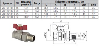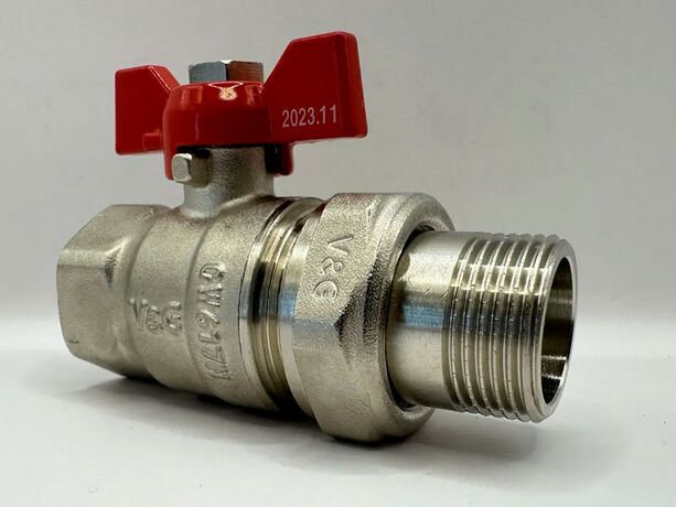 VG-1041.V&G Valogin Кран-американка прямая в/н красная бабочка используется для перекрытия потока рабочей среды на трубопроводах, оборудовании и емкостях систем: питьевого и хозяйственного питьевого назначения; горячего водоснабжения; отопление; сжатого воздуха; технологических трубопроводов, оборудования и емкостях, предназначенных для веществ, не агрессивных к материалам крана.