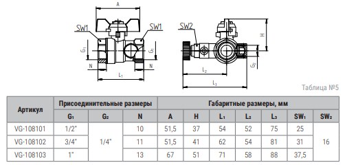 VG-108101. V&G Valogin Кран шаровой 1/2" в/в с дренажем и отверстием применяется в качестве запорной арматуры в трубопроводных системах (водопроводных, хозяйственно-питьевых, отопительных), транспортирующих любые среды, не агрессивные к материалам изделия. Сливной механизм позволяет осуществить дренаж части гидравлической системы.